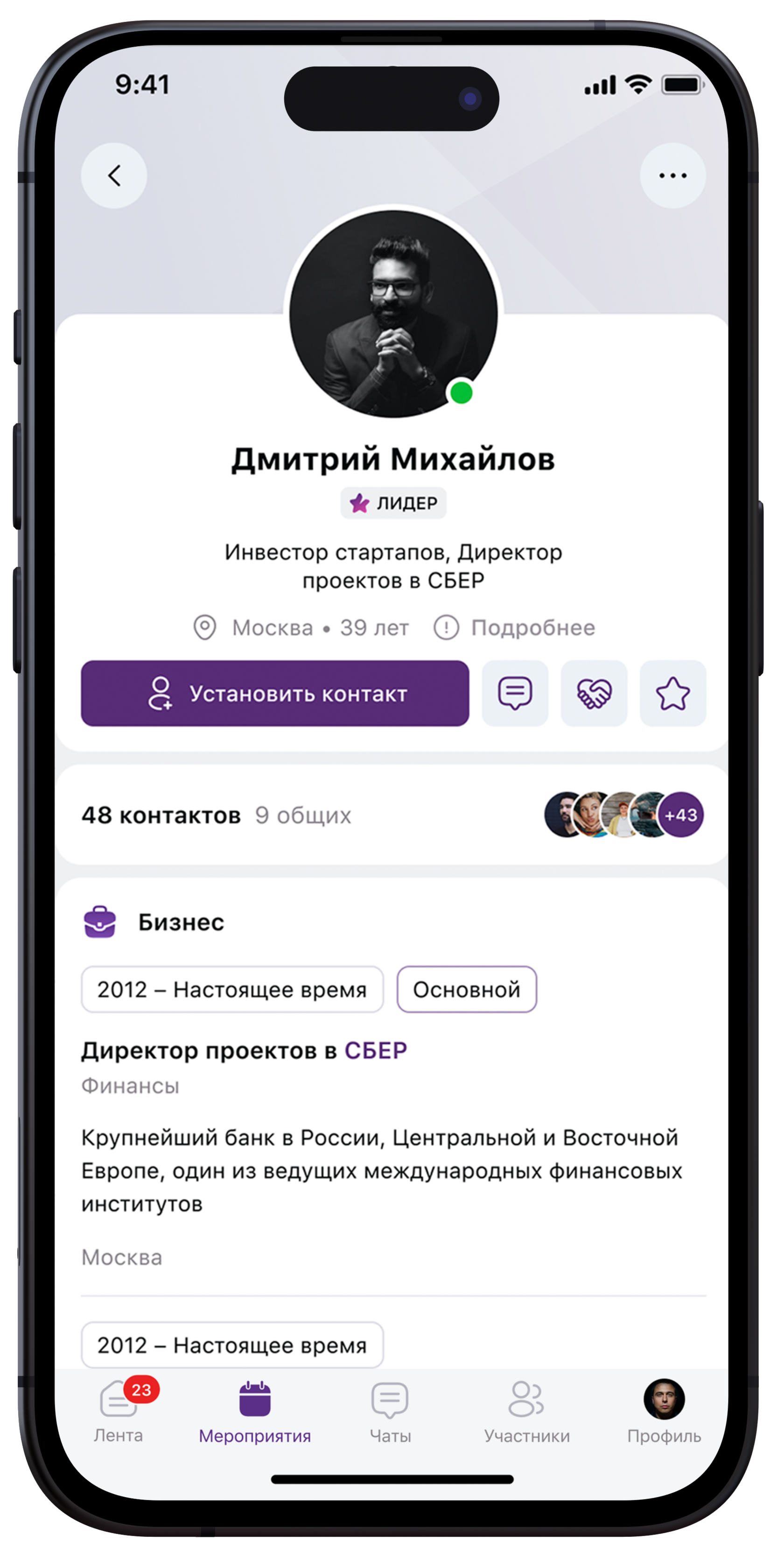Правильно заполненный профиль даст возможность адресной работы с участниками: находить друг друга не только по имени, но и по опыту, компетенциям и интересам.