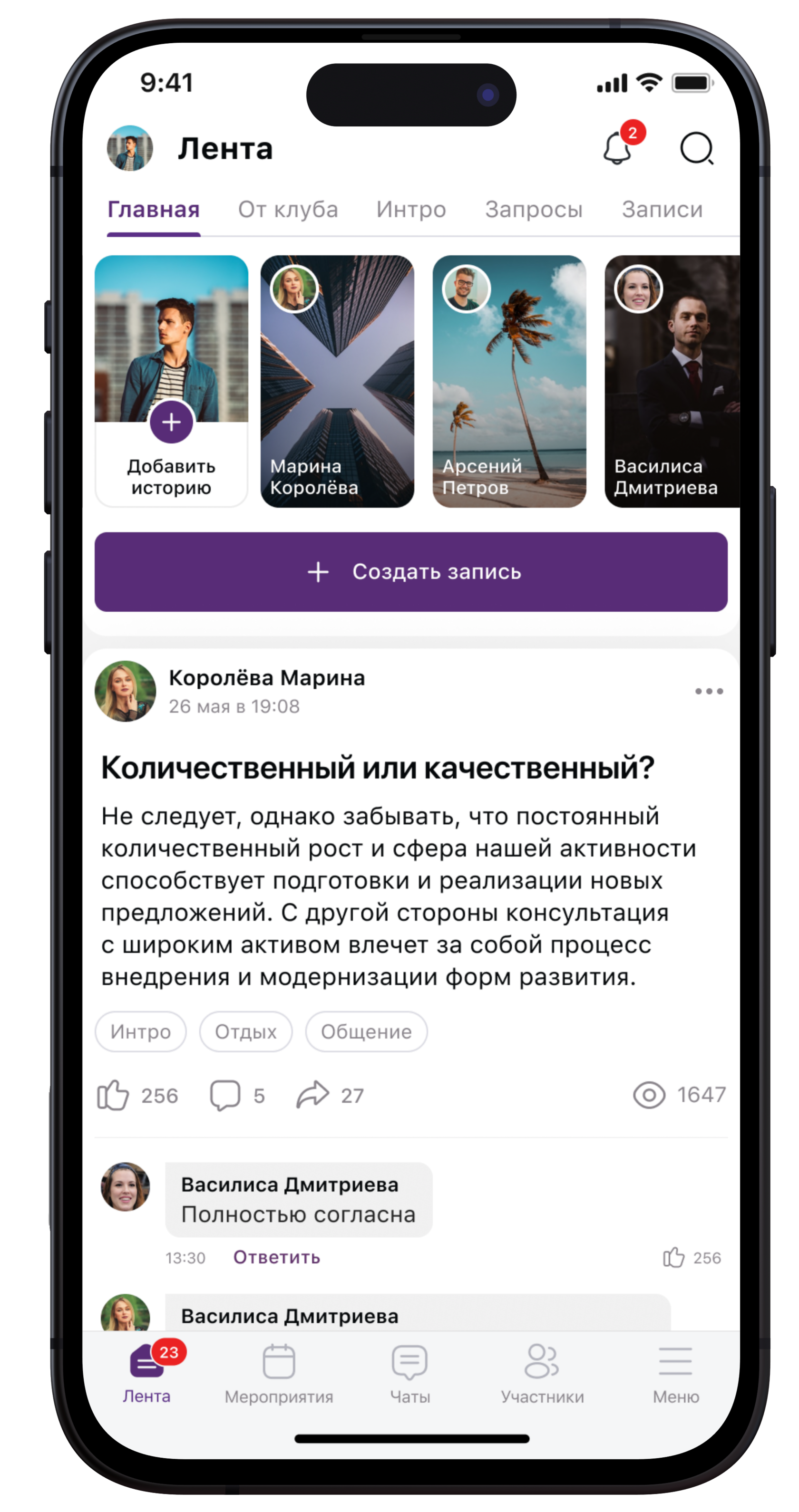 Лента помогает участникам всегда быть в курсе самых актуальных новостей сообщества.