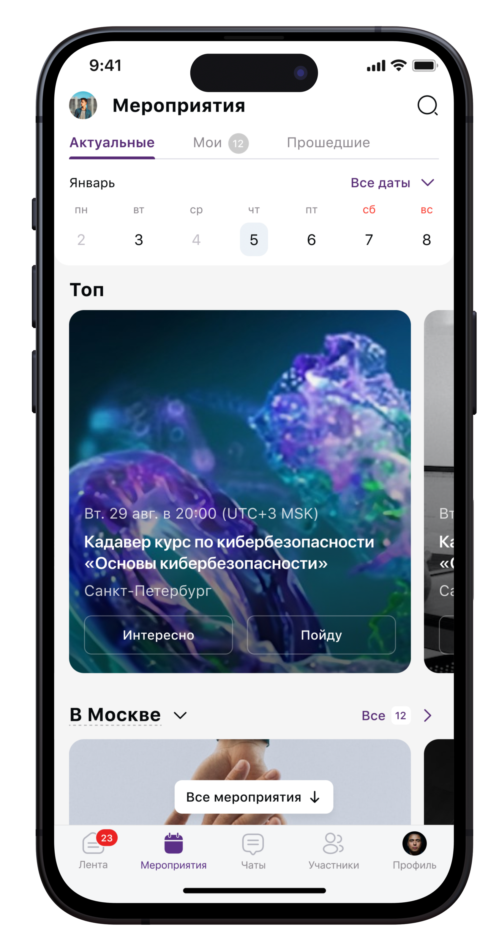 Создавайте офлайн и онлайн мероприятия, приглашайте участников и гостей, анализируйте посещаемость, публикуйте материалы с прошедших встреч.